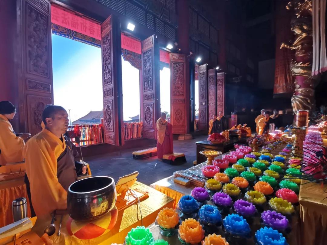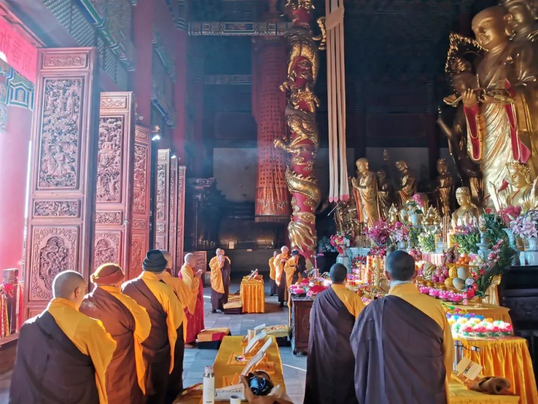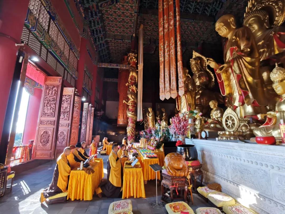 大理崇圣寺常住僧众在大雄宝殿内举行“息灾祈福”法会