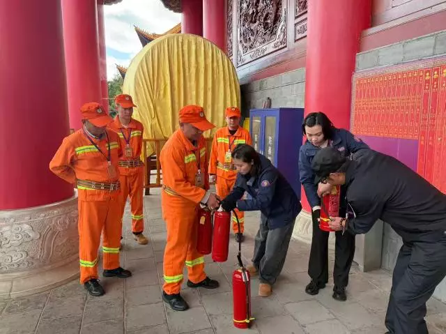 在消防技能专项培训演练活动中,重点开展了灭火器与消防水带等的使用教学及实操演练。同时,认真组织开展寺院全区域消防安全检查,重点强化用火用电安全,以及积极向信教群众、游客进行宣传引导,努力营造“全民消防、生命至上”的浓厚氛围。
